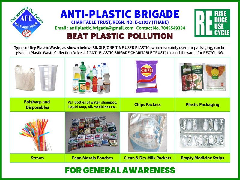 Anti Plastic Brigade charitable trust is a registered Non Govermental Organzation from the city of Thane working mainly for Solid Waste Management along with other Green Activities since 2017.
