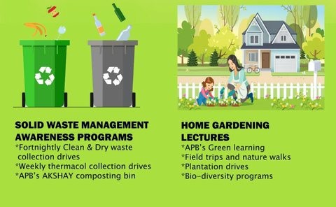 We conduct various awareness programs on Solid Waste Management, Weekly Thermacol and Fortnightly Clean and Dry waste collection drives, Under APB's Green Study Tour we go on field trips and nature walks with our volunteers to learn and get hands on experience of various techniques
